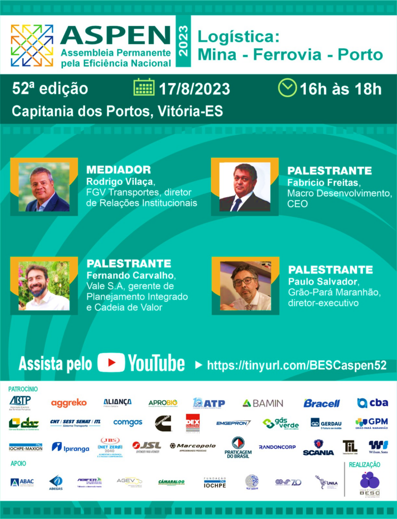 “Temos consciência do desenvolvimento logístico dos projetos. Há uma série de esforços para alcançar isso. Contudo, especificamente, ficamos 10 anos para licenciar um porto, ou seja, são prazos que fazem perder oportunidades. Temos que correr e tentar fazer o mais rápido possível, para que possamos realizar um planejamento financeiro com base nos investimentos a serem feitos e com atenção na infraestrutura”. Acompanhe o link com a transmissão.